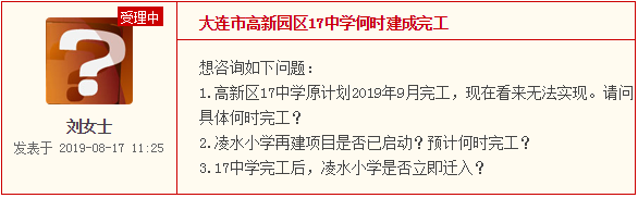 天健网消息(记者 姜洁)“高新园区17中学何时建成完工?”、“凌水小学再建项目是否已启动?”“17中学完工后,凌水小学是否立即迁入?”记者在民意网上查阅到,一直有市民咨询17中学与凌水小学校舍迁建情况的诉求。那么校舍迁建项目进展如何?