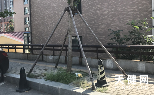 为保证树木稳固,会安装支架。